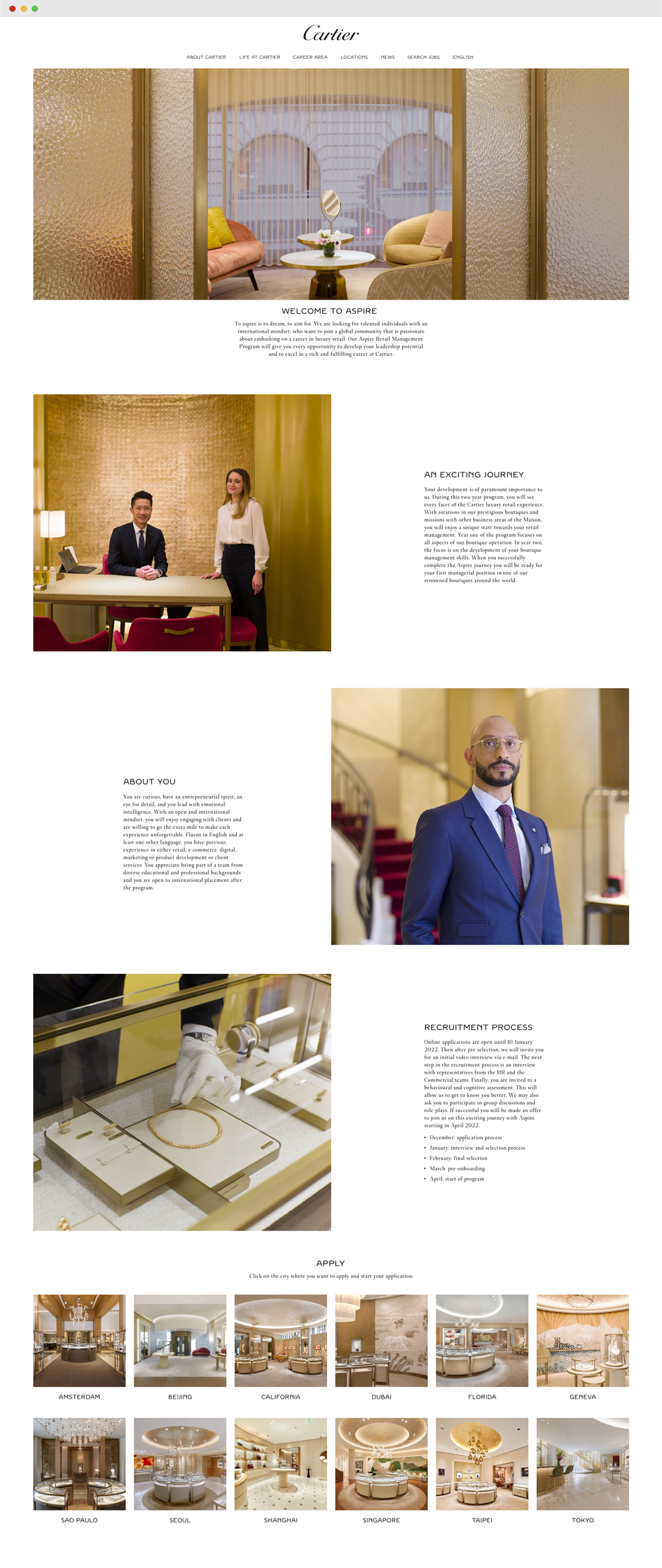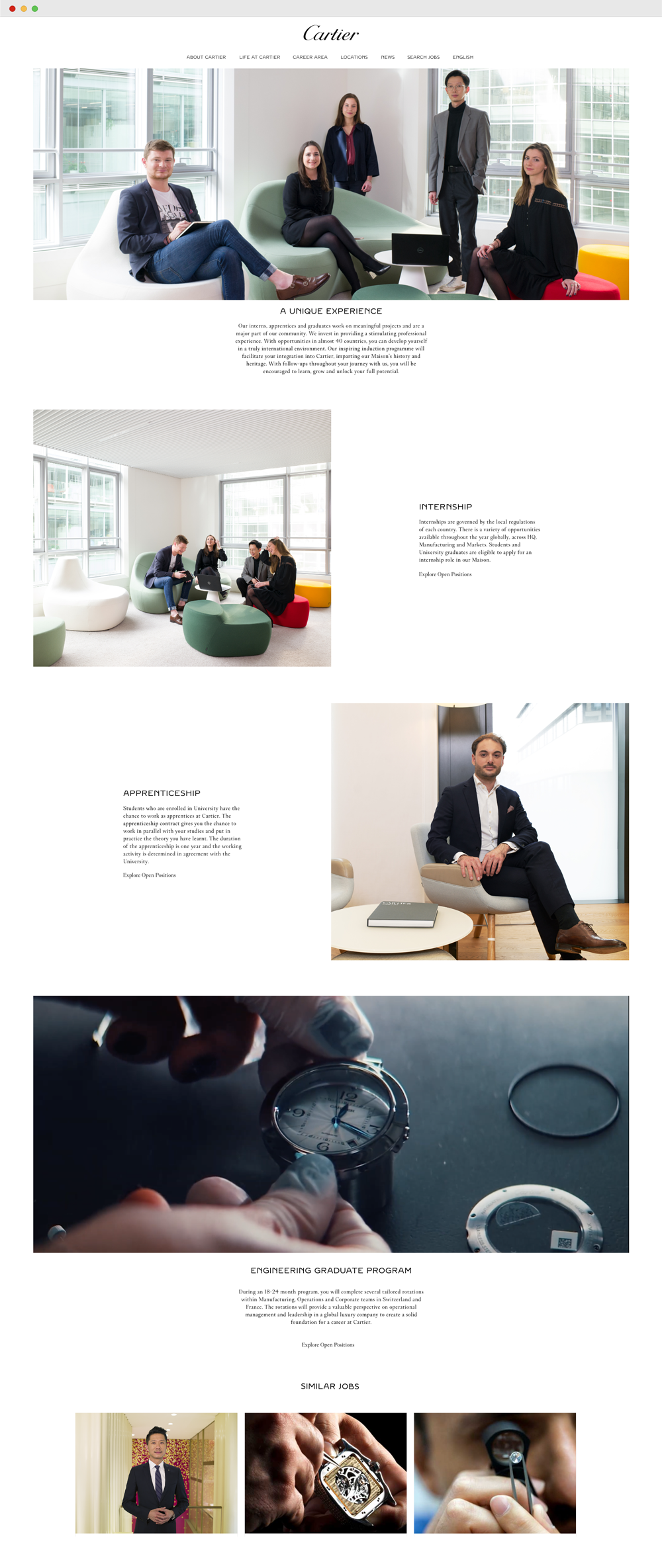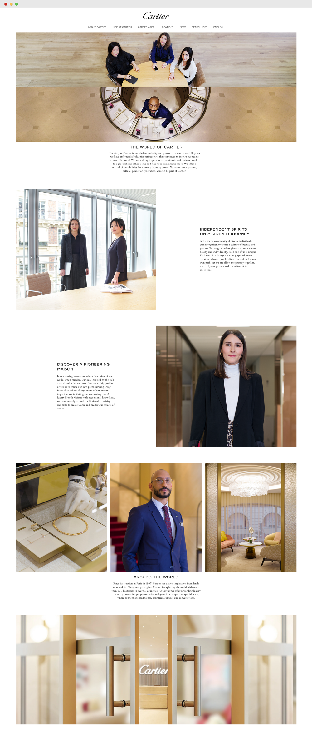 Design and content were tailored for an international audience, clearly positioning Cartier as a prestigious and inclusive global employer.