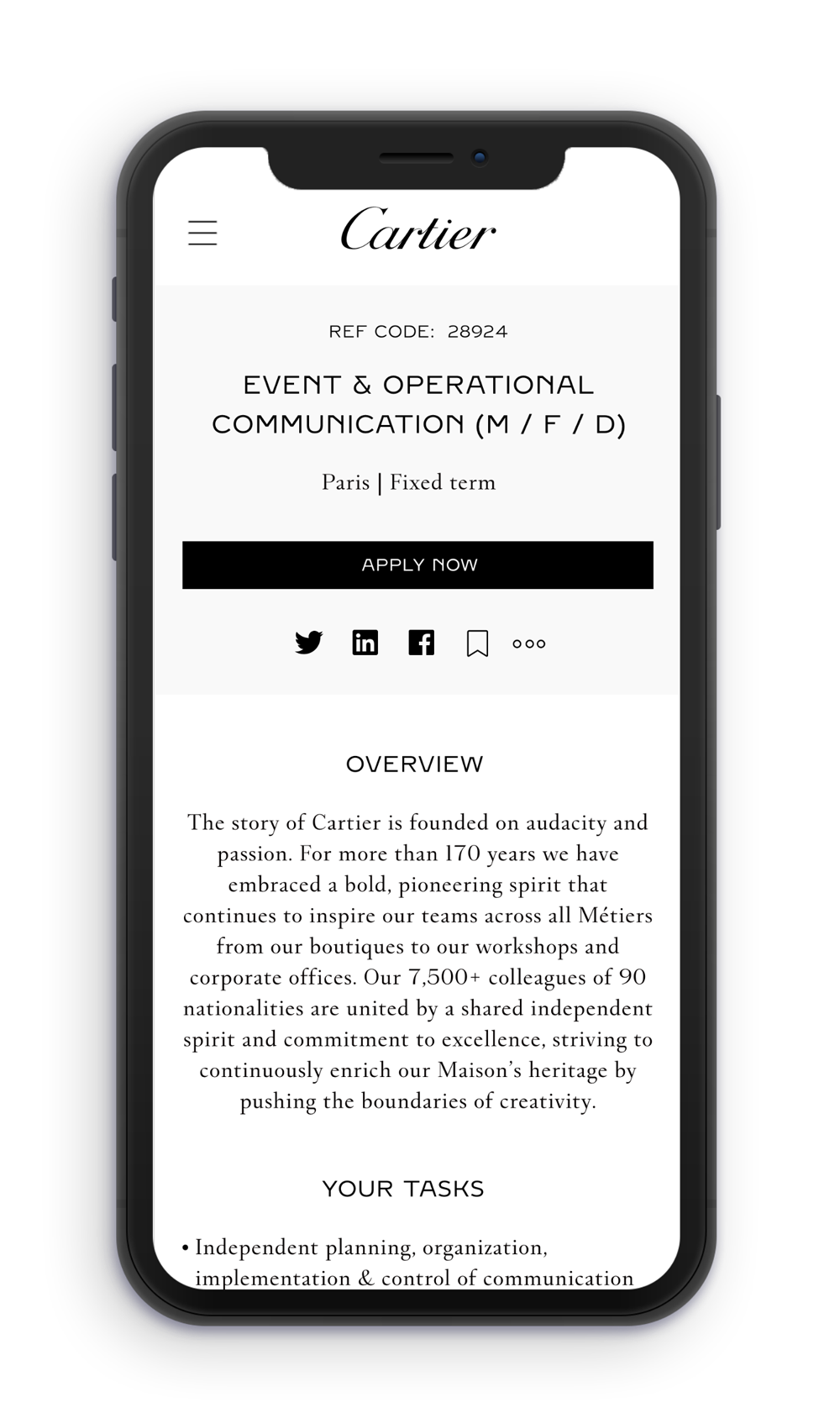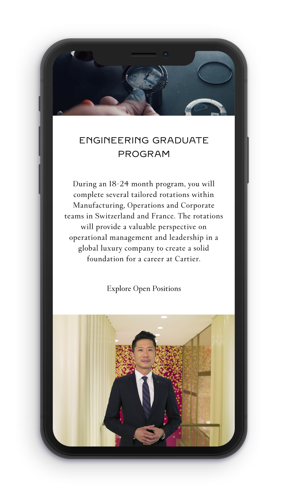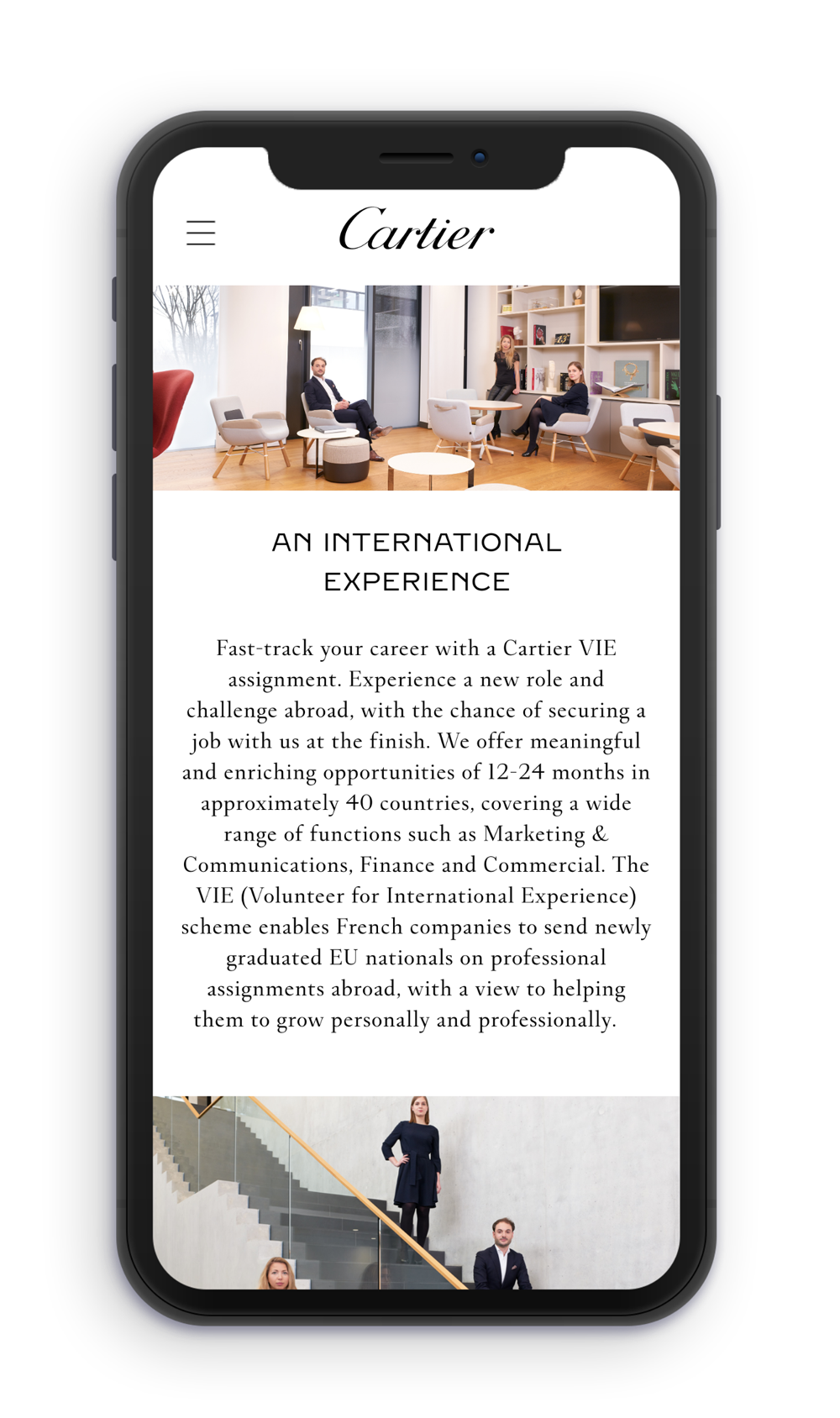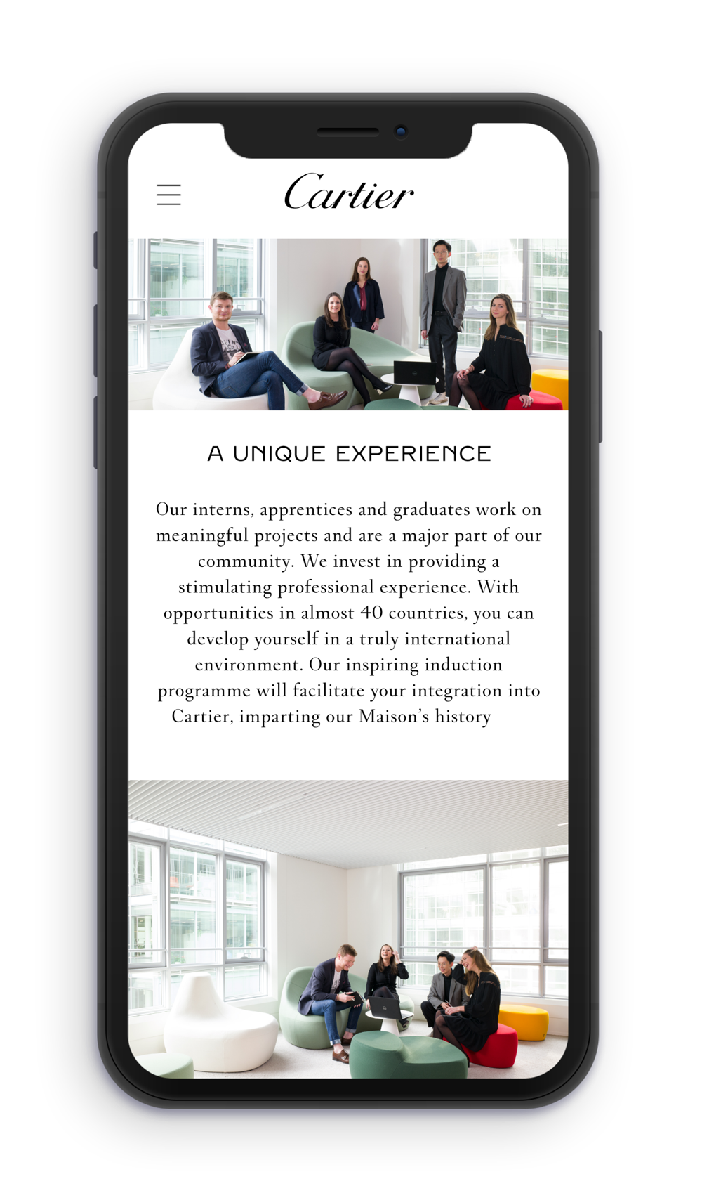 Design and content were tailored for an international audience, clearly positioning Cartier as a prestigious and inclusive global employer.
