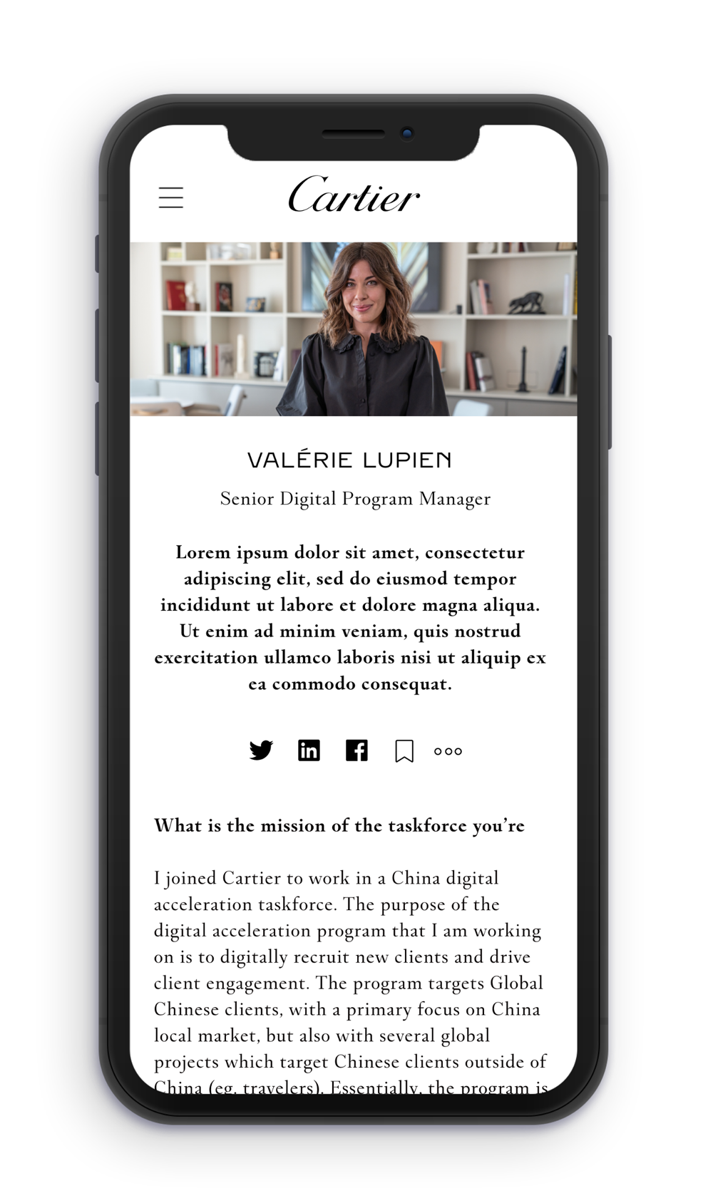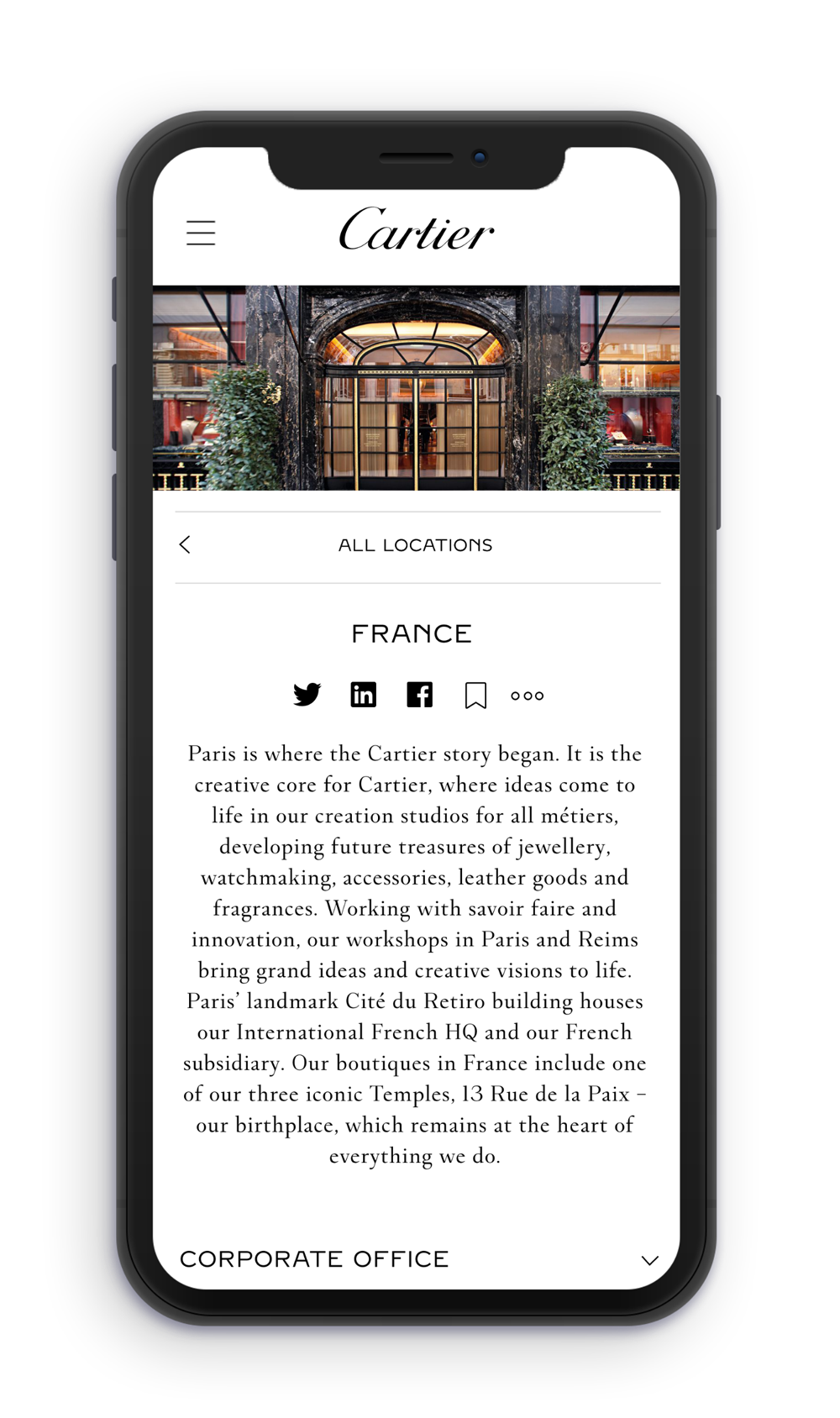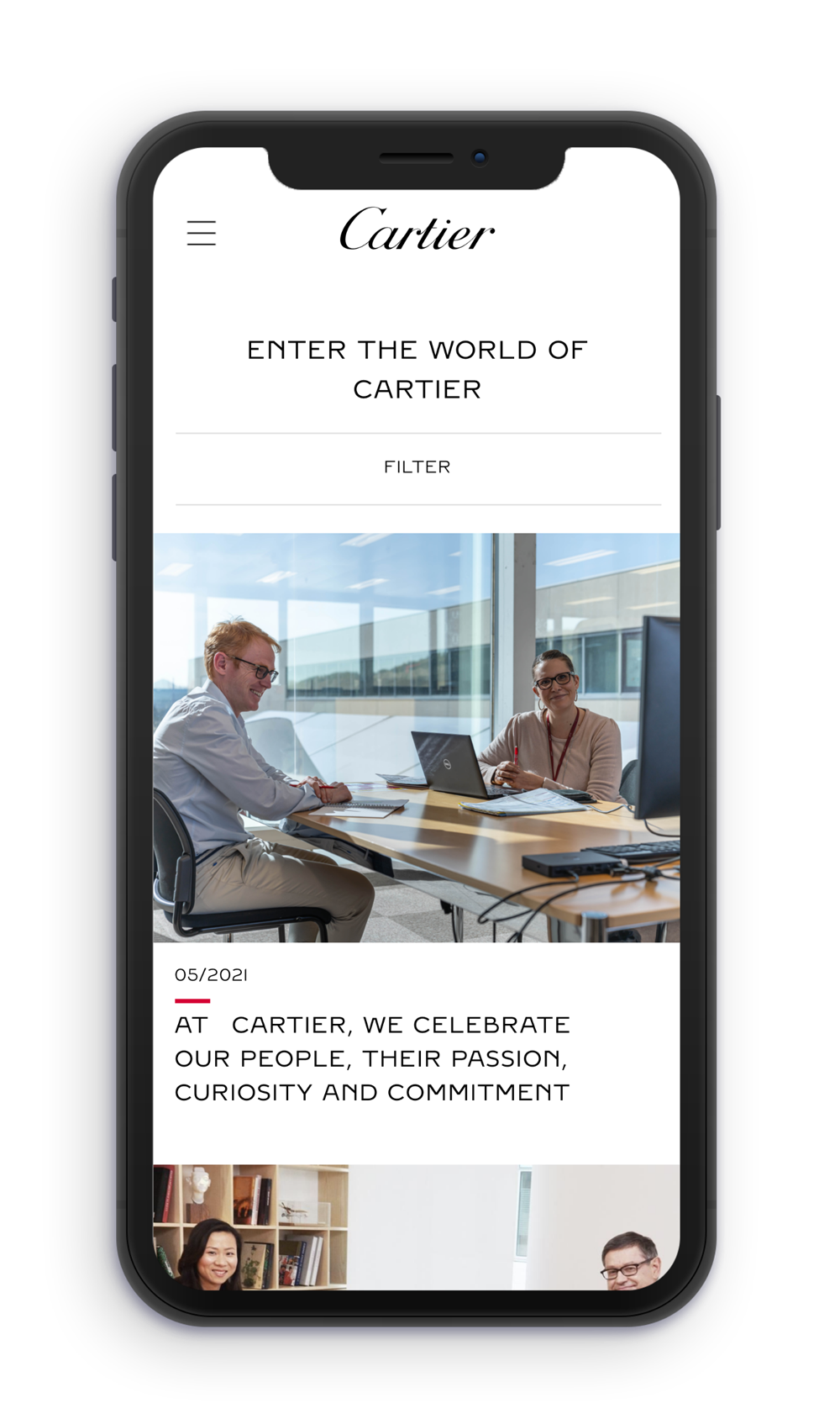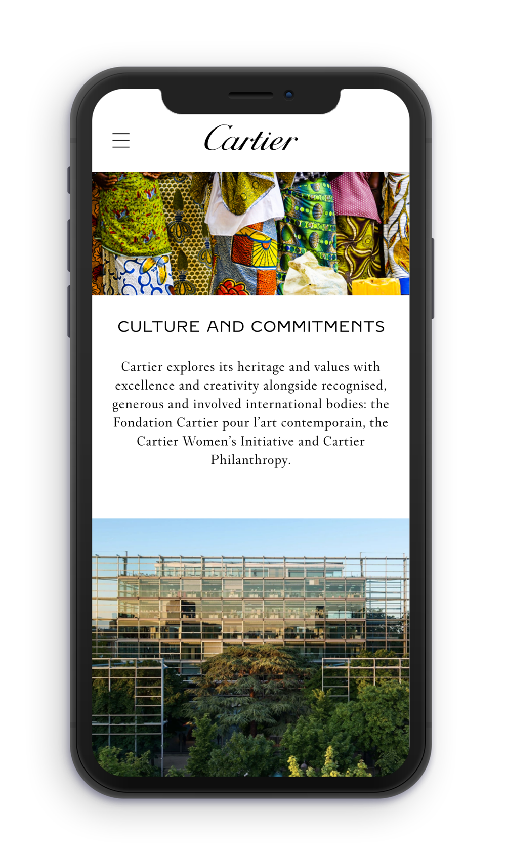 Balanced storytelling of “Life at Cartier” with intuitive navigation for seamless applications.